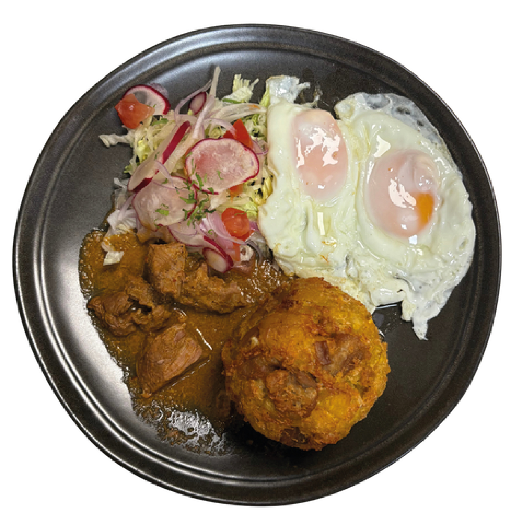 (Made with green plantain, pork rinds, fried egg and cheese)