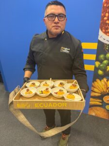 Representando al Sello Gastronómico RAÍS Ecuador dentro del stand de Ecuador en Madrid Fusión, llevamos los sabores auténticos del país a un público global. Esta participación no solo nos permitió mostrar nuestra riqueza culinaria, sino también reafirmar nuestro compromiso con la excelencia y la difusión de la cultura ecuatoriana más allá de sus fronteras.